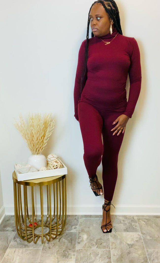 Our monochrome goddess set is the pure classic set.  This set can easily be dressed up with heels or boots. Model is wearing a size medium. Due to the fitted turtle neck going up a size is recommended.
